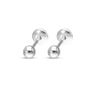 A03D1- AROS ARGOLLA CHICA CON BOLITA CENTRAL PLATA 925